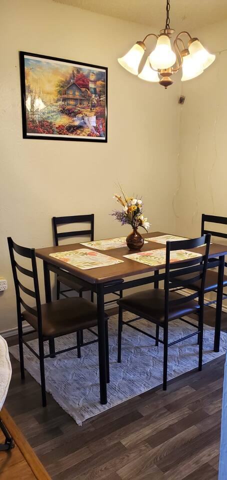 Amenities Included: • Fast WiFi (100+ Mbps) — perfect for work or streaming • Smart TV with Netflix, Hulu & Disney+ (Guest needs to log in their account) • Fully stocked kitchen with Keurig + coffee/tea supplies • Washer & dryer (detergent provided) • Free on-site parking • Pet-friendly (with approval & fee) • Blackout curtains — great for night-shift workers • Outdoor space with fenced yard (pets & kids) • Central air/heat • Essentials: fresh linens, towels, soap, shampoo, hair dryer