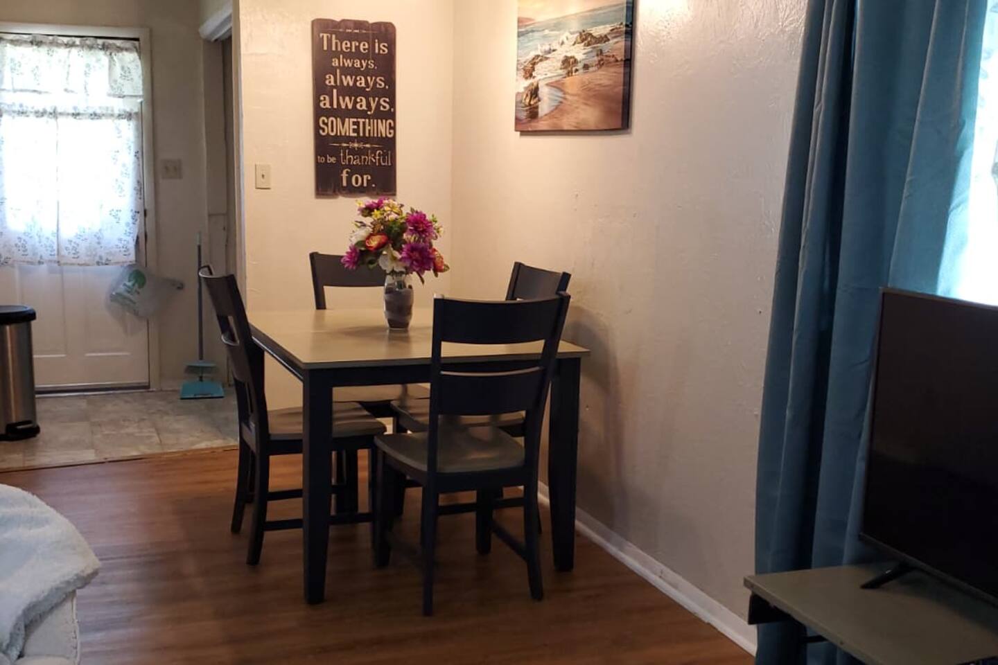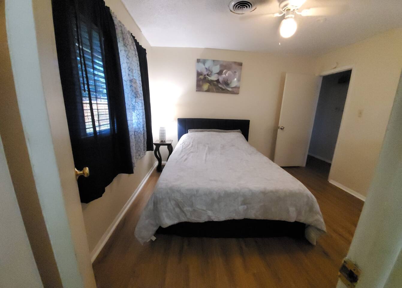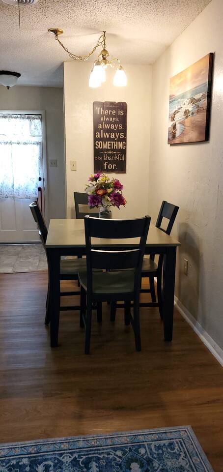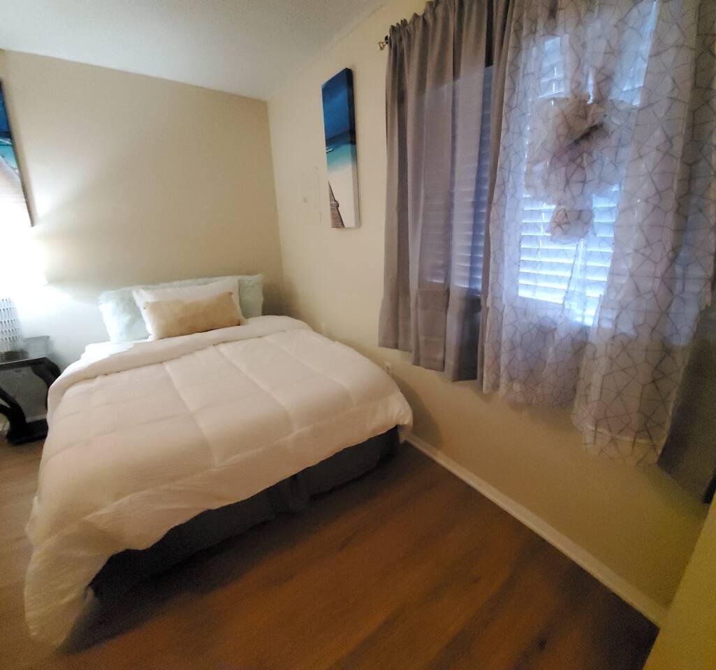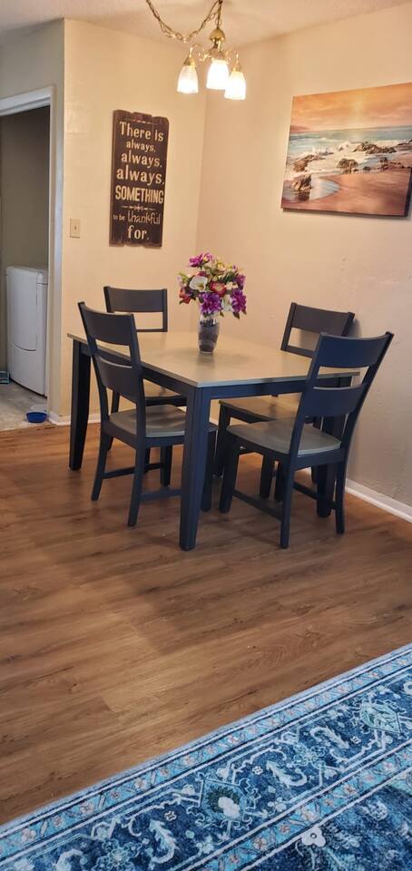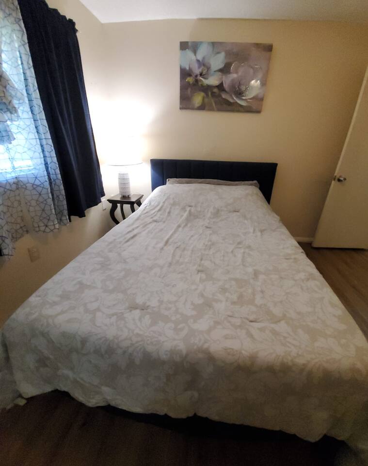 Amenities Included: • Fast WiFi (100+ Mbps) — perfect for work or streaming • Smart TV with Netflix, Hulu & Disney+ (Guest needs to log in their account) • Fully stocked kitchen with Keurig + coffee/tea supplies • Washer & dryer (detergent provided) • Free on-site parking • Pet-friendly (with approval & fee) • Blackout curtains — great for night-shift workers • Outdoor space with fenced yard (pets & kids) • Central air/heat • Essentials: fresh linens, towels, soap, shampoo, hair dryer • Desk/workspace for remote work or study